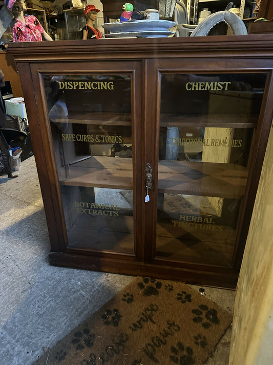 Vintage Glazed Library Bookcase Shelves Display Cabinet - Mahogany Leaded Glass