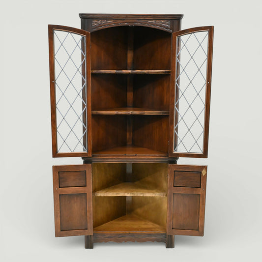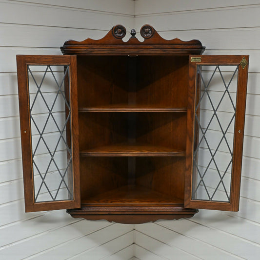 Old Charm Corner Display Cabinet with Leaded Glass Tudor Brown FREE UK Delivery*. SBR11068/2110E