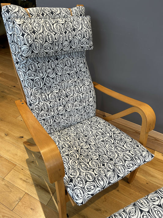 Vintage Scandinavian lounge chair and footstool by Finnish designer Simo Heikkila for IKEA - new upholstery