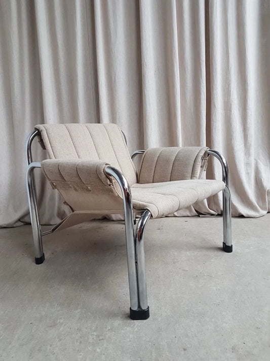 Vintage Mid Century 70s Modernist Chrome Desk Chair Lounge Armchair Retro R798