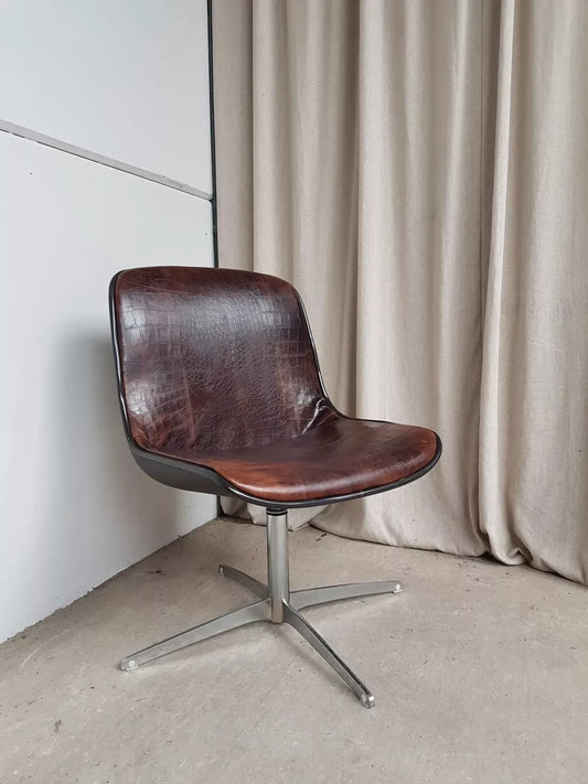 Vintage Mid Century Modernist Chrome Leather Swivel Chair By Charles Pollock #389