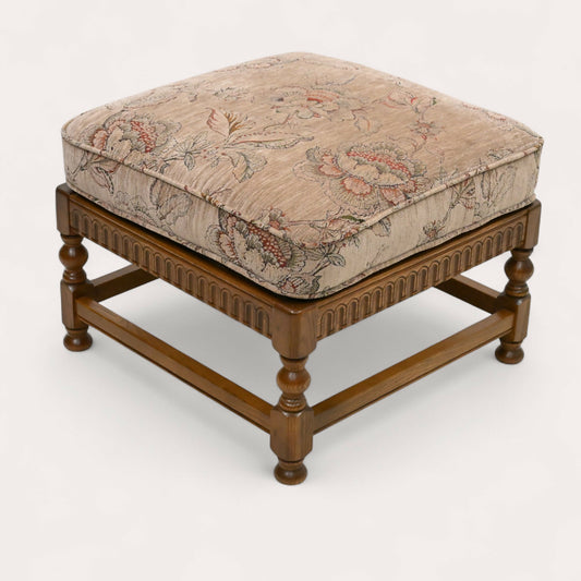 Retro Teak Footstool/Dressing Stool By Uniflex Upholstered Seat FREE UK Delivery. SBR9120/1605D