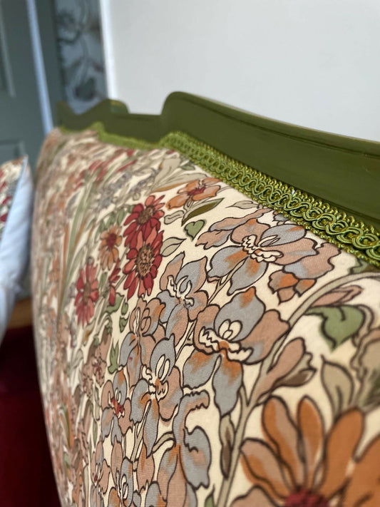 Antique Green Olive Moss Floral Liberty Refurbished Burgundy Seat Sofa Chair