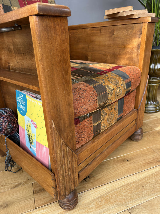 1930s Art Deco Library Chair - shelving, cigar tray and footstool
