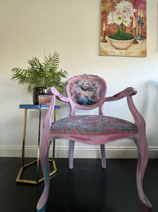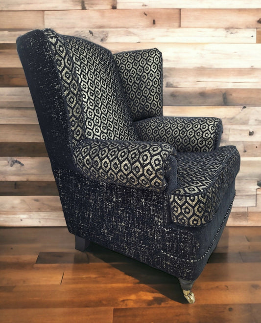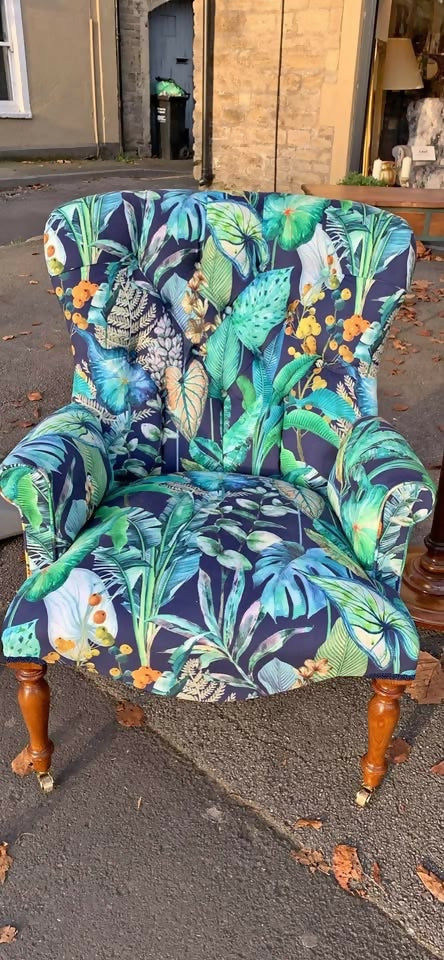 Custom Gold Accent Chair with Luxurious Botanical Velvet Upholstery - Modern Vintage Statement Chair. Handmade Luxury Seating
