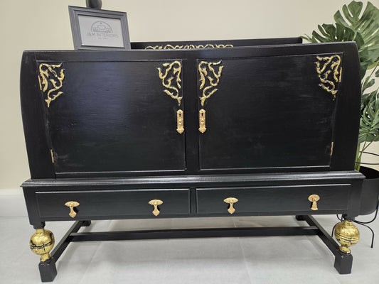 Vintage Aw-Lyn Black and Gold sideboard/dresser/drinks cabinet.