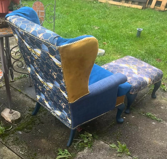 Sold outWingback chair with stool