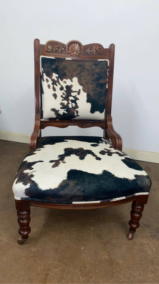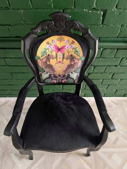 Antique Black velvet French Louis Style Chair with Leopard detail feature.