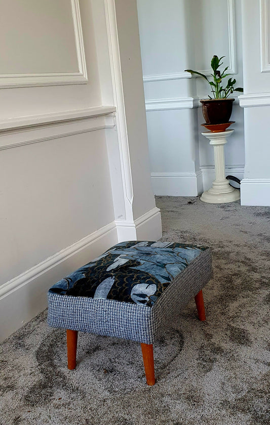 Vintage Mid Centuryl 1940s / 50s Footstool Tapered Wooden Legs. Reupholstered.