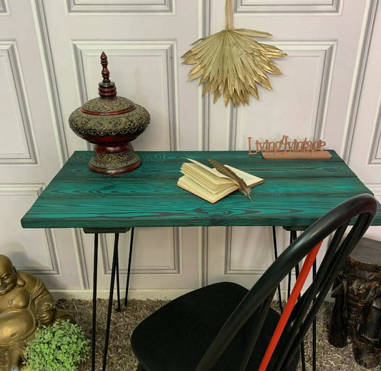 Industrial Style Console Table / Desk with Hairpin Legs Yakisugi Wood