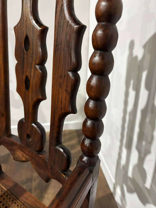 Victorian Ornate Gothic Hall Chair Carved Walnut Bobbin Frame Velvet Upholstery