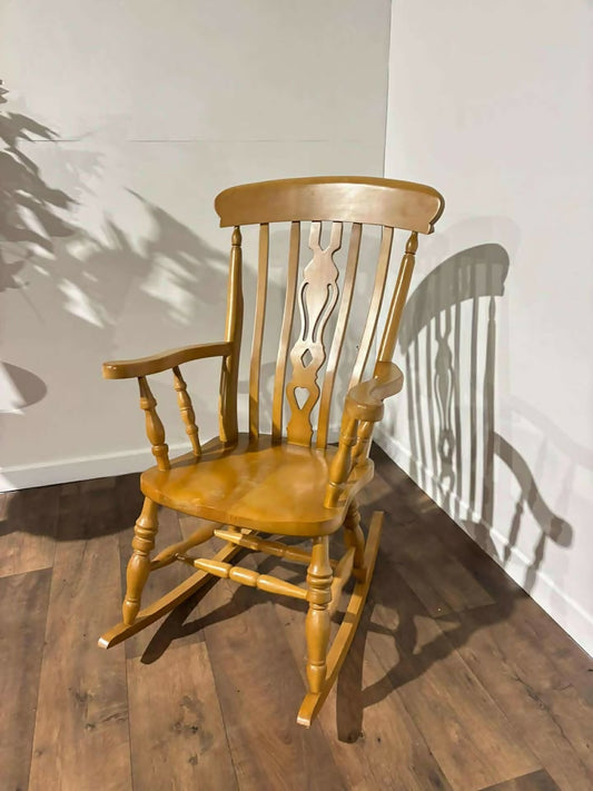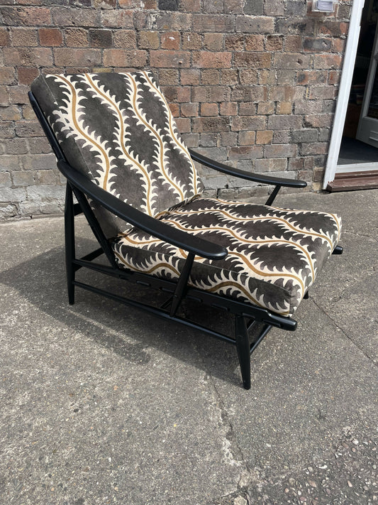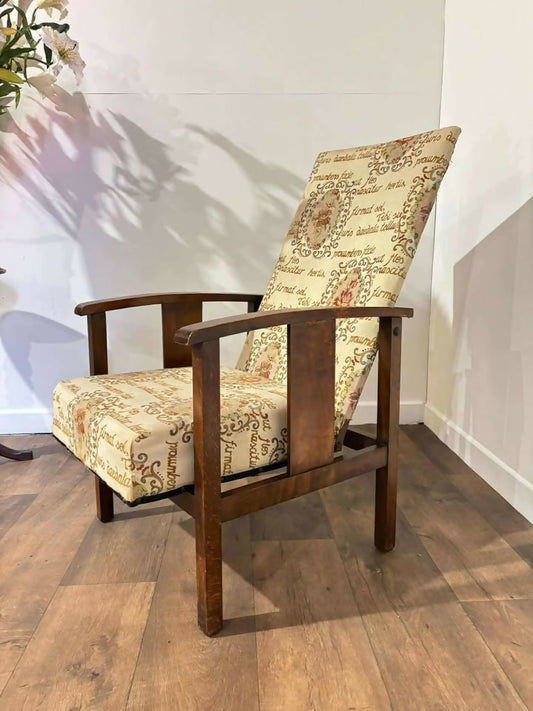 Vintage Beech Reclining Armchair – Upholstered with & plain Arms