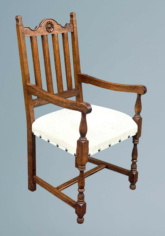 Set of Eight Vintage Oak Dining Chairs (Including 2 Carvers)