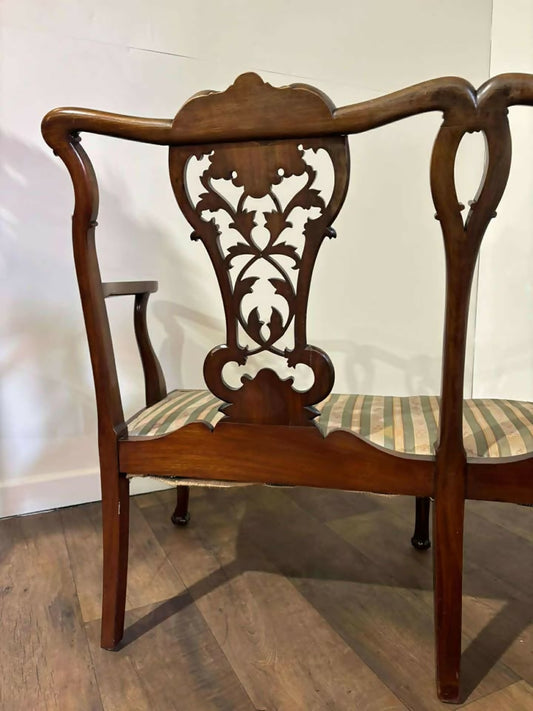 Antique Chippendale Revival Twin Seat Mahogany Settee