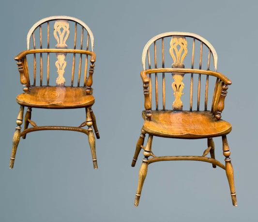 A Good Quality Pair of Ash Low Back Windsor Armchairs