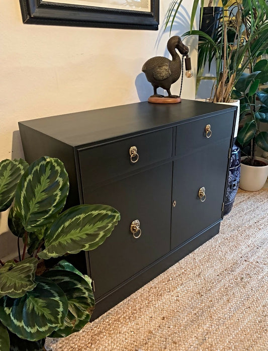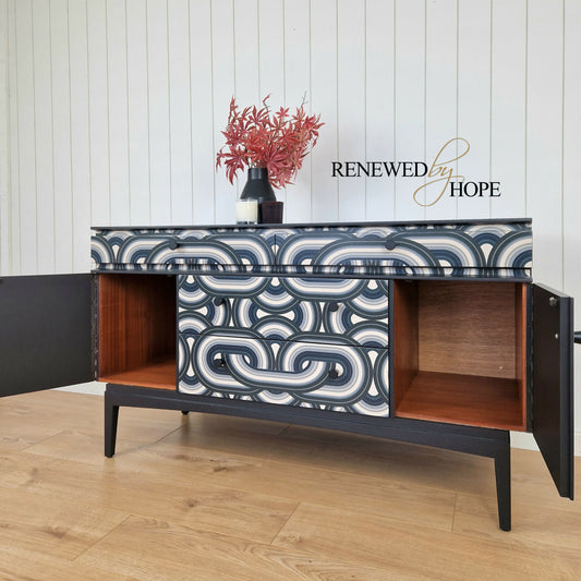 Black Mid Century Sideboard with Bold Geometric Design, TV Bench, Storage