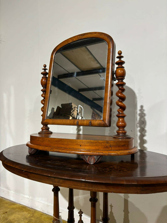 Victorian walnut dressing table mirror, supported on turned carved supports.