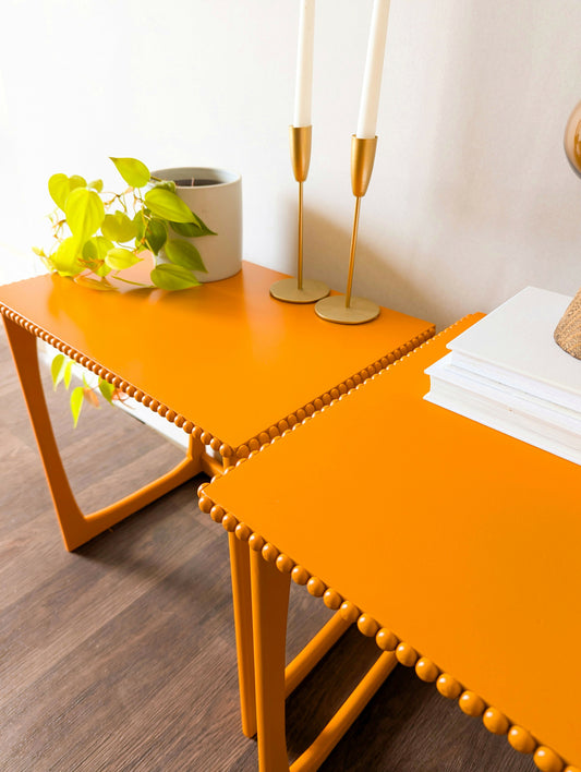 Solid Wood, Curved Edge Nest Of Tables X 3
