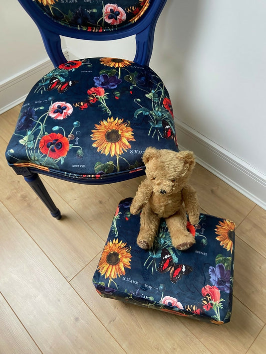 Floral Funky Unique Bespoke Statement Accent Chair, Upholstered Balloon Back Occasional Vibrant French Style Chair, Armless Chair