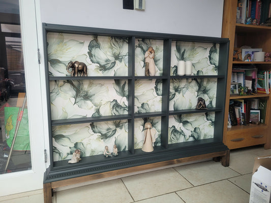 Hand-Refinished "Midnight Botanical" Display Console & Bookshelf