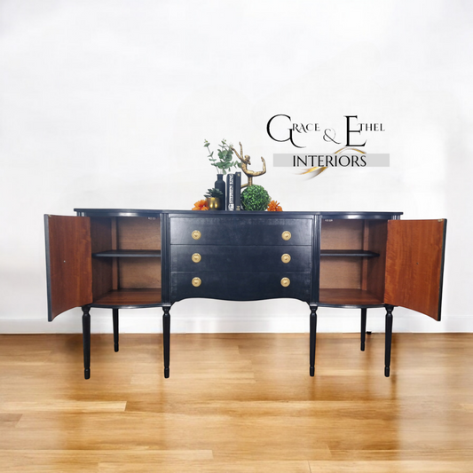 MADE TO ORDER Refurbished vintage Stag console table, black, antique brass, bronze, hallway, dresser, dressing table, hand painted, upcycled