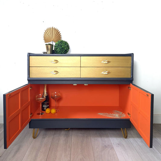 GIN CABINET *** made to order - Similar cabinets in stock *** - Vintage Antique Drinks Cocktail Cabinet in black and pink