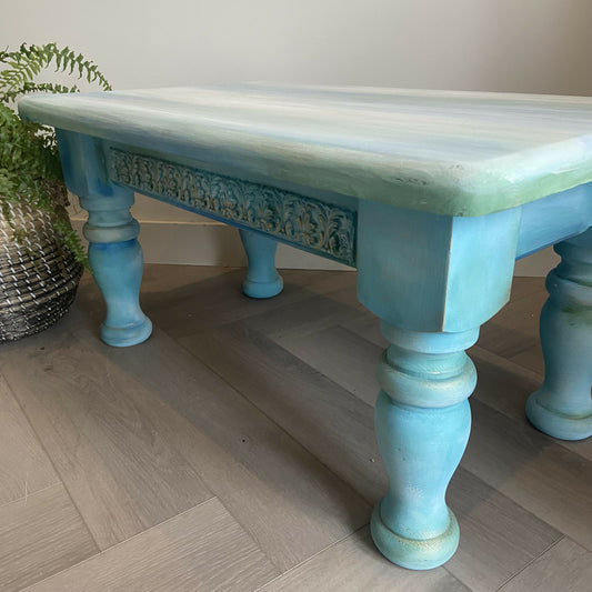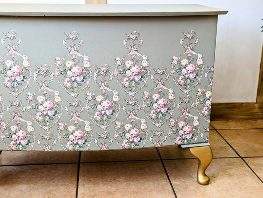 Vintage upcycled floral green and gold blanket box, Queen Anne legs storage chest, french style Ottoman