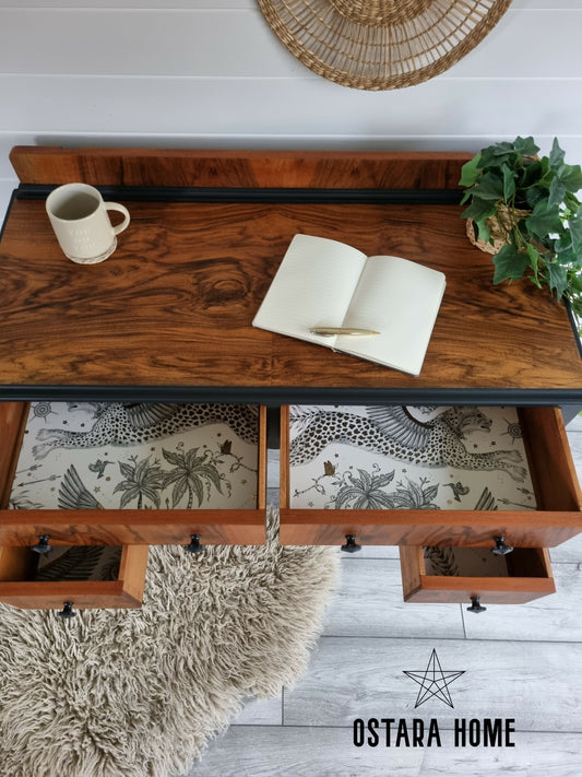 ~SOLD~ Queen Anne Dressing Table/Desk in Walnut and Ash Black