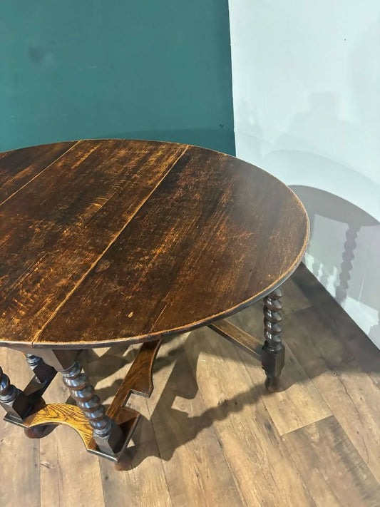 Vintage Dark Oak Gate-leg Table On Barley Twist Supports