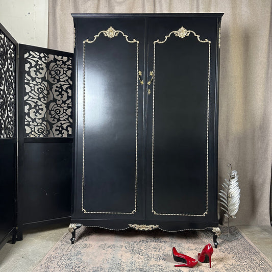 Petit Refurbished art deco cocktail cabinet, vintage black and gold drinks cabinet, birds, sideboard, dresser, gin bar, hand painted,