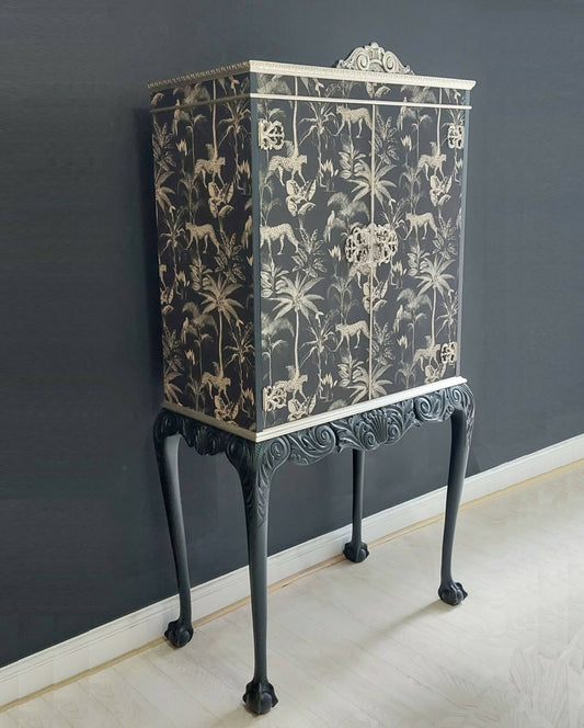 Decoupaged drinks cabinet, Queen Anne cocktail cabinet, vintage gin cabinet, art deco drinks cabinet, cheetah print