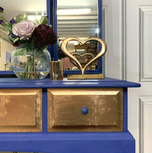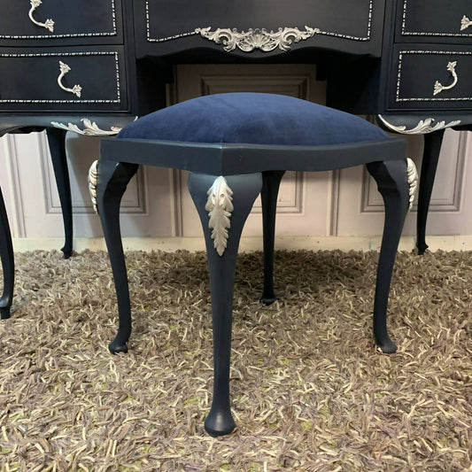 Navy Blue Gothic Carved Dressing Table With Mirror
