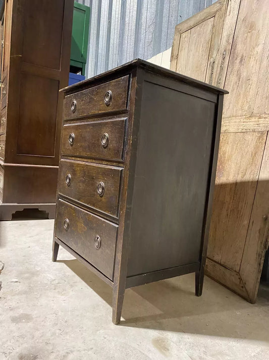 Vintage Oak & Ply Very Rustic Deep Brown Black Chest of Drawers