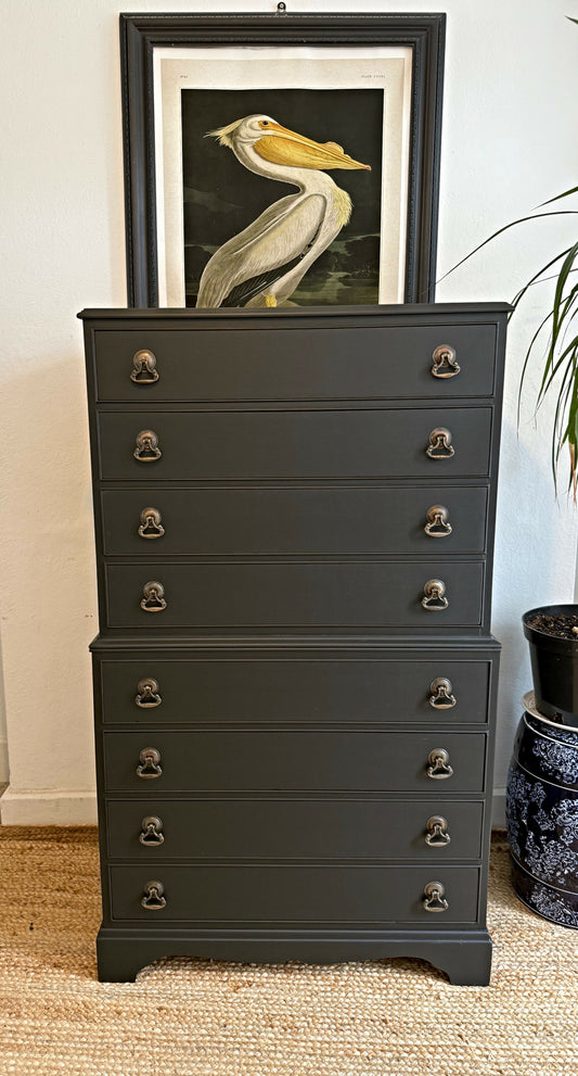 Newly refurbished tallboy chest of drawers black chest on chest vintage antique