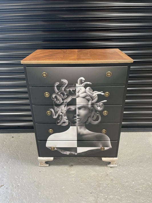 Black & Gold, Geometric Stencilled Upcycled, Painted Dresser – Striking Modern Glamour with Hand-Finished Detail