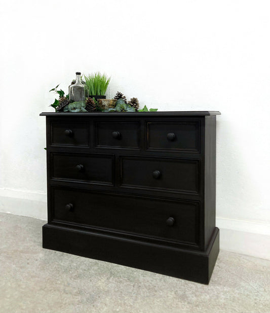 CHEST OF 6 DRAWERS / SMALL SIDEBOARD. BLACK HAND PAINTED FURNITURE