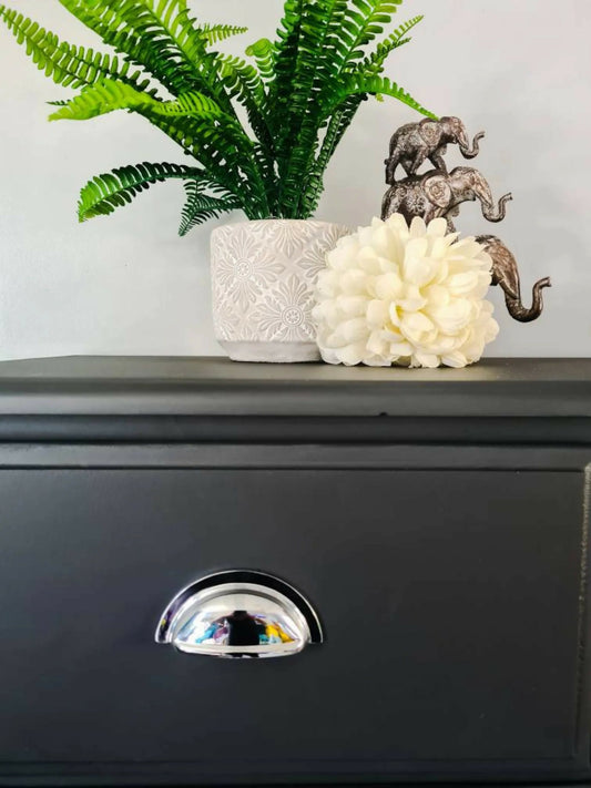 grey chest of drawers. Grey, bedroom furniture,tall boy