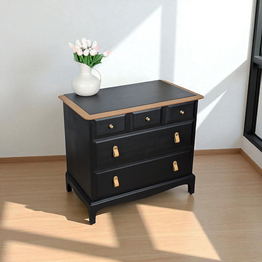 Vintage Stag minstrel chest of drawers black oversized bedside cabinet