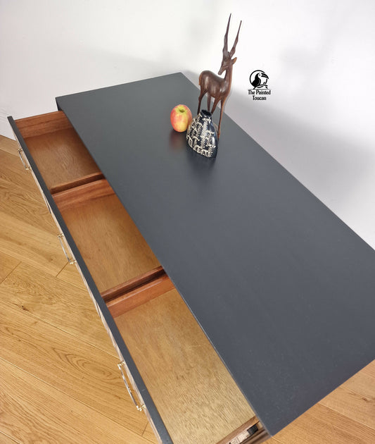 Refurbished vintage Stag Minstrel captains chest, mid century chest of drawers, dark grey, dresser, extended large drawers, retro, sideboard