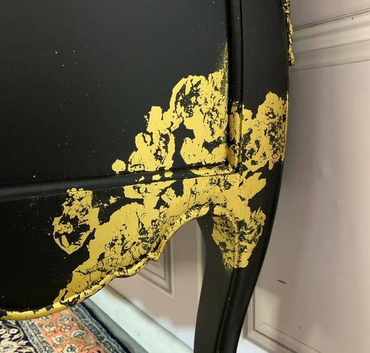 Painted Black Art Deco Chest of Drawers Chinoiserie Gold Flowers Vintage Blossom Chest of 4 Drawers Upcycled Bedroom Furniture