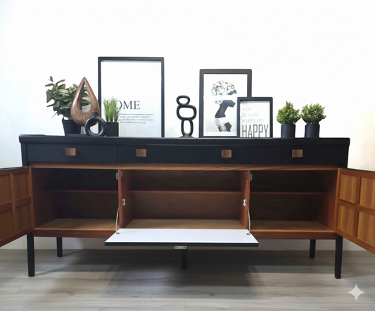 Black and Teak Nathan TV Media Unit, mid century modern sideboard, vintage tv stand, refurbished, upcycled