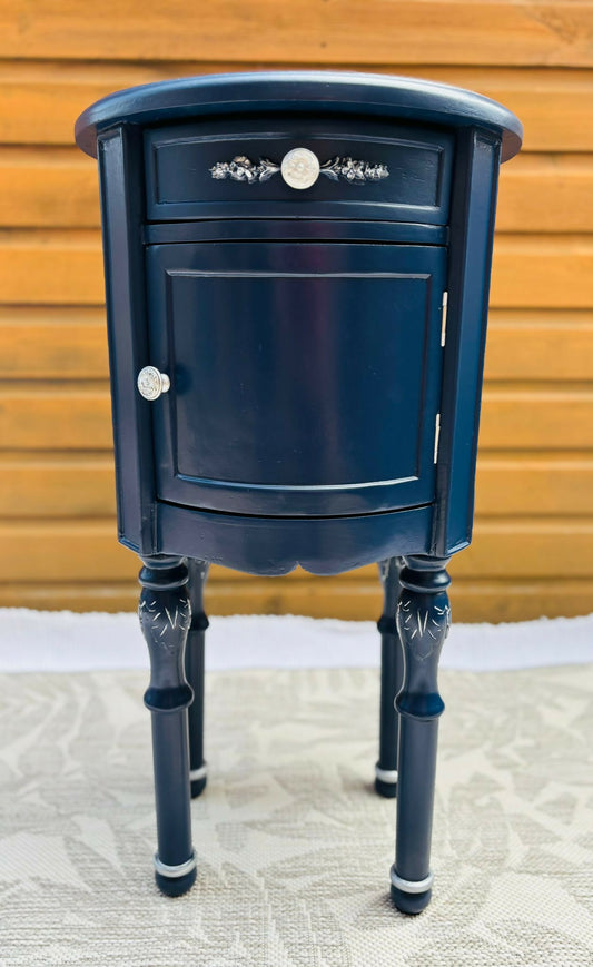 Solid Oak Console/TV Unit Hand-Painted Deep Blue with Highland Cow