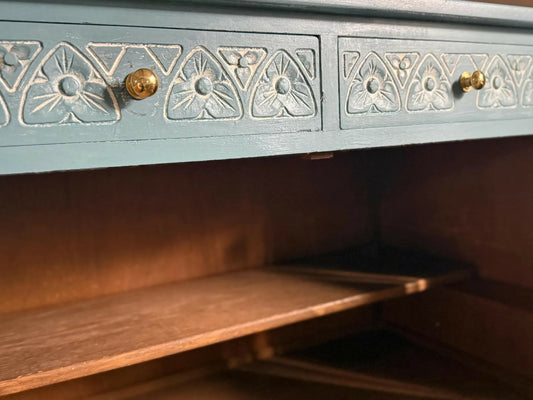 Newly refurbished Stag console table blue vintage sideboard dressing table desk