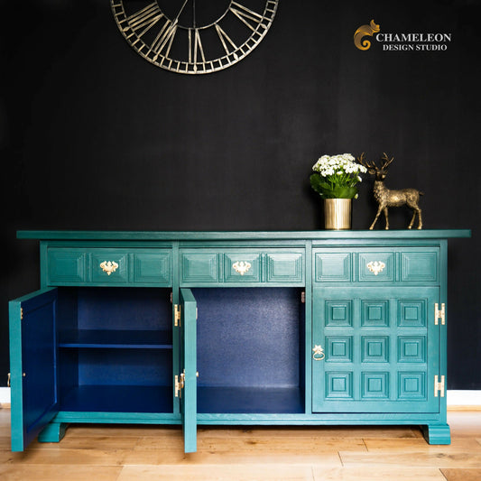 Vintage Blue Sideboard / Indian Sideboard / Long Sideboard / Upcycled Cabinet