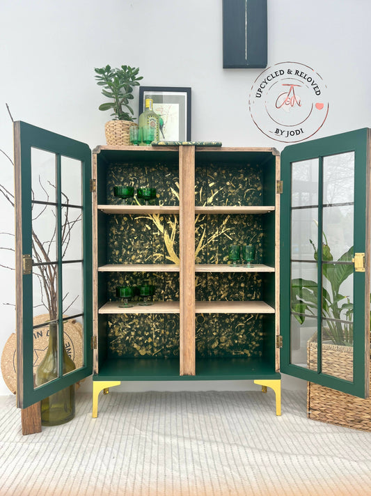 SOLD! Commissions available: Light Oak Cocktail Cabinet with stunning green & gold interior