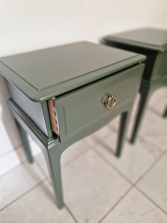 Stag Minstrel Bedsides, Leggy, One drawer pair, Green
