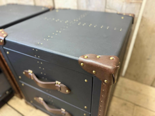 Black Leather Brown Trimmed Handmade Luxury Bedroom End Tables