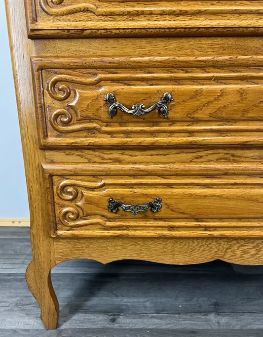 Chest of Drawers Vintage French Louis Oak 3 Drawers Carved Cabinet LOT 4474