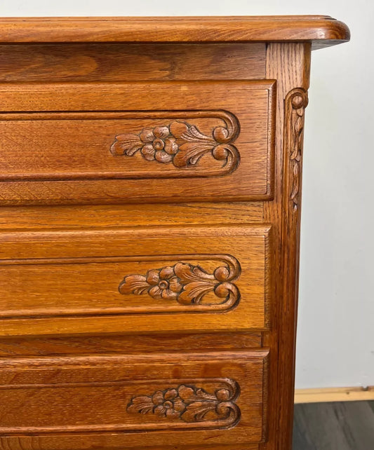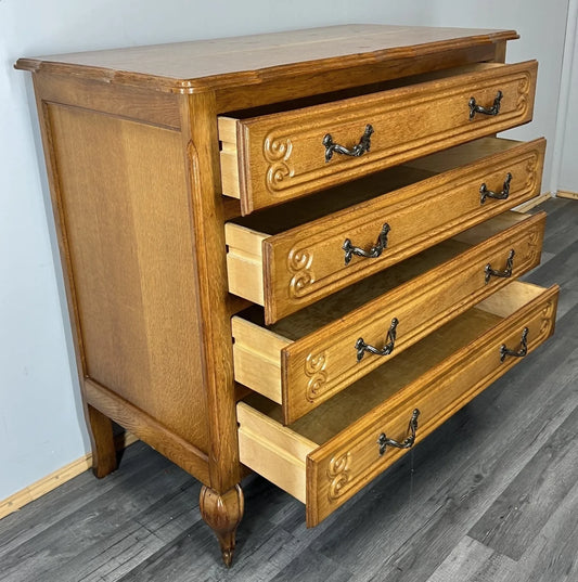 Chest of Drawers Vintage French Louis Oak Carved 4 Drawers Cabinet LOT 4454