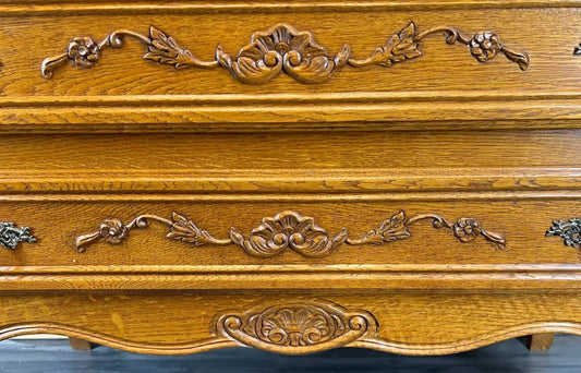 Chest of Drawers Vintage French Louis Oak 3 Drawer Carved Cabinet LOT 4465